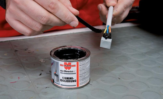 Жидкая резиновая изоляция WURTH стала олицетворением безупречного немецкого качества. Продукт от ГК Вюрт успешно прошел тестирование VDE и отвечает самым высоким требованиям по безопасности, а составу присвоен статус − «нетоксичен». Данный препарат имеет густую консистенцию и представляет собой черную пасту. Отлично подходит для изоляции паяных, сварных и болтовых контактов, а также оконцовки кабелей. Его можно использовать вместо компаундов для защиты и изоляции радиоэлектронных узлов.