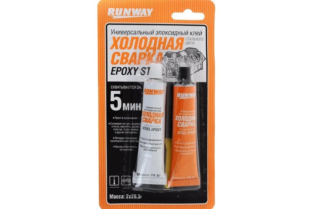 Двухкомпонентный эпоксидный клей с армирующими добавками. Предназначен для ремонта топливных баков, радиаторов, металлических и пластиковых деталей.