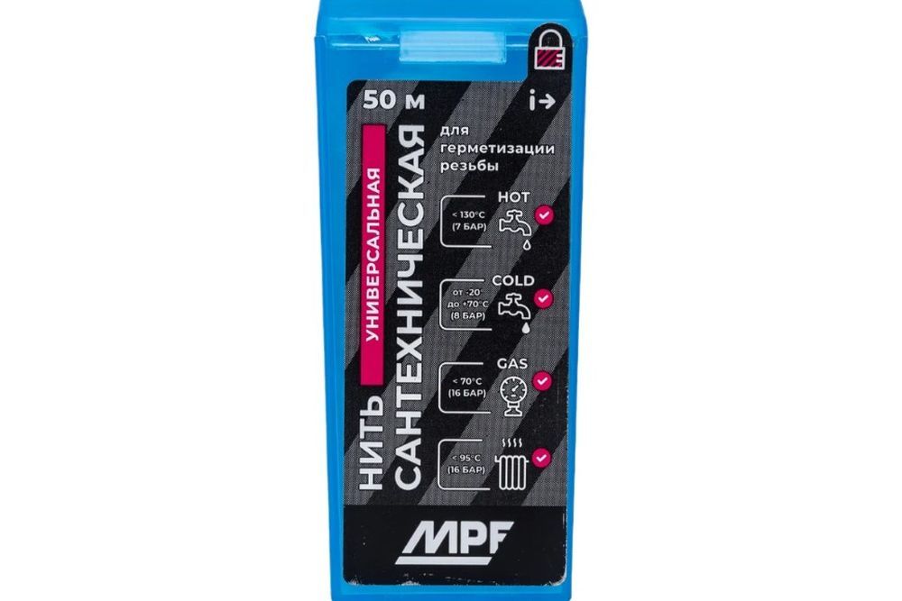 - Сантехническая нить. Она выполняет функцию заполнения микронеровностей на поверхности, что позволяет создать надежное соединение и предотвратить вытекание среды. Используется как уплотнитель резьбы, обеспечивает ее герметичность, предотвращает протечки жидкостей или газов. Производится из полиэтилена, полипропилена или политетрафторэтилена (PTFE). Эти материалы упругие, устойчивы к химическим веществам, перепадам температуры. Имеют антикоррозийные свойства, способны противостоять высокому давлению.