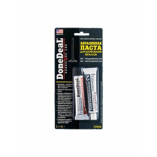 Абразивные пасты № 1 и № 2 изготовлены с использованием высококачественной термостойкой смазки и модифицированных порошков карбида кремния, обладающих высокойшлифующей способностью.Использование абразивных паст DoneDeal обеспечивает повышение производительности работ по сравнению с применением других абразивных паст.Термостойкая смазка, входящая в состав паст, способствует ускорению шлифования, уменьшает шероховатость и охлаждает поверхность обрабатываемой детали.Абразивные пасты № 1 и № 2 предназначены соответственно для черновой (предварительной) и чистовой (финишной) шлифовки металлических поверхностей при следующих операциях:притирка клапанов двигателей внутреннего сгоранияподгонка поршневых колецдоводка необходимых зазоров в различных сопряжениях двигателей, КПП, промышленного оборудованияподготовка ювелирных изделий под полировкуустранение рисок, коррозионных раковин, микрозадиров и т. д.правка рабочих кромок режущего инструмента, в том числе с твердосплавными напайкамипроведение широкого спектра других доводочных работпаста № 1 (среднезернистая, 120 грит)Предназначена для проведения черновой (предварительной) шлифовки. Позволяет шлифовать обрабатываемые участки с умеренной интенсивностью, не оставляя при этом глубоких царапин на поверхности металла. Обеспечивает равномерную интенсивность истирания как при ручном, так и при механическом способе обработки, что позволяет получить высокое качество работ при минимальных временных затратах. Снимает слой металла, измеряемый сотыми долями миллиметра, создавая более чистую поверхность, без штрихов.паста №2 (мелкозернистая, 220 грит) Предназначена для проведения чистовой (финишной) шлифовки. Обеспечивает достижение высокого класса чистоты на обрабатываемых участках и позволяет добиться высокой точности. Снимает припуски в тысячные доли миллиметра и придает поверхности зеркальный блеск.