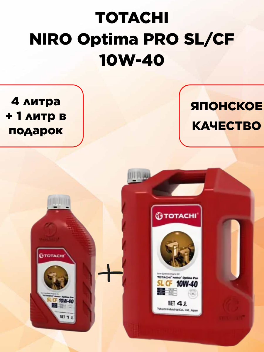 Масло моторное TOTACHI NIRO Optima Pro Semi-Synthetic 10W-40 SL/CF 4+1 литров