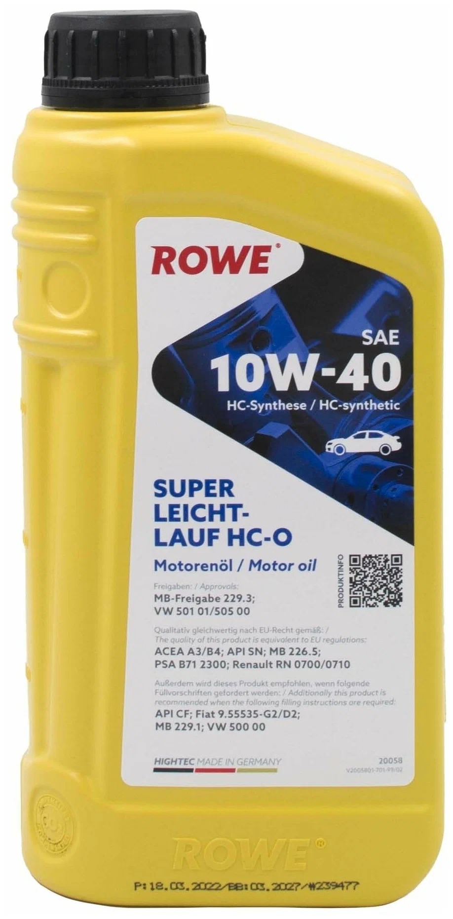 ROWE Масло Rowe 10/40 Hightec Mb 229.1/229.3, Vw 501 01/505 00, A3/B4,Sn Super Leichtlauf