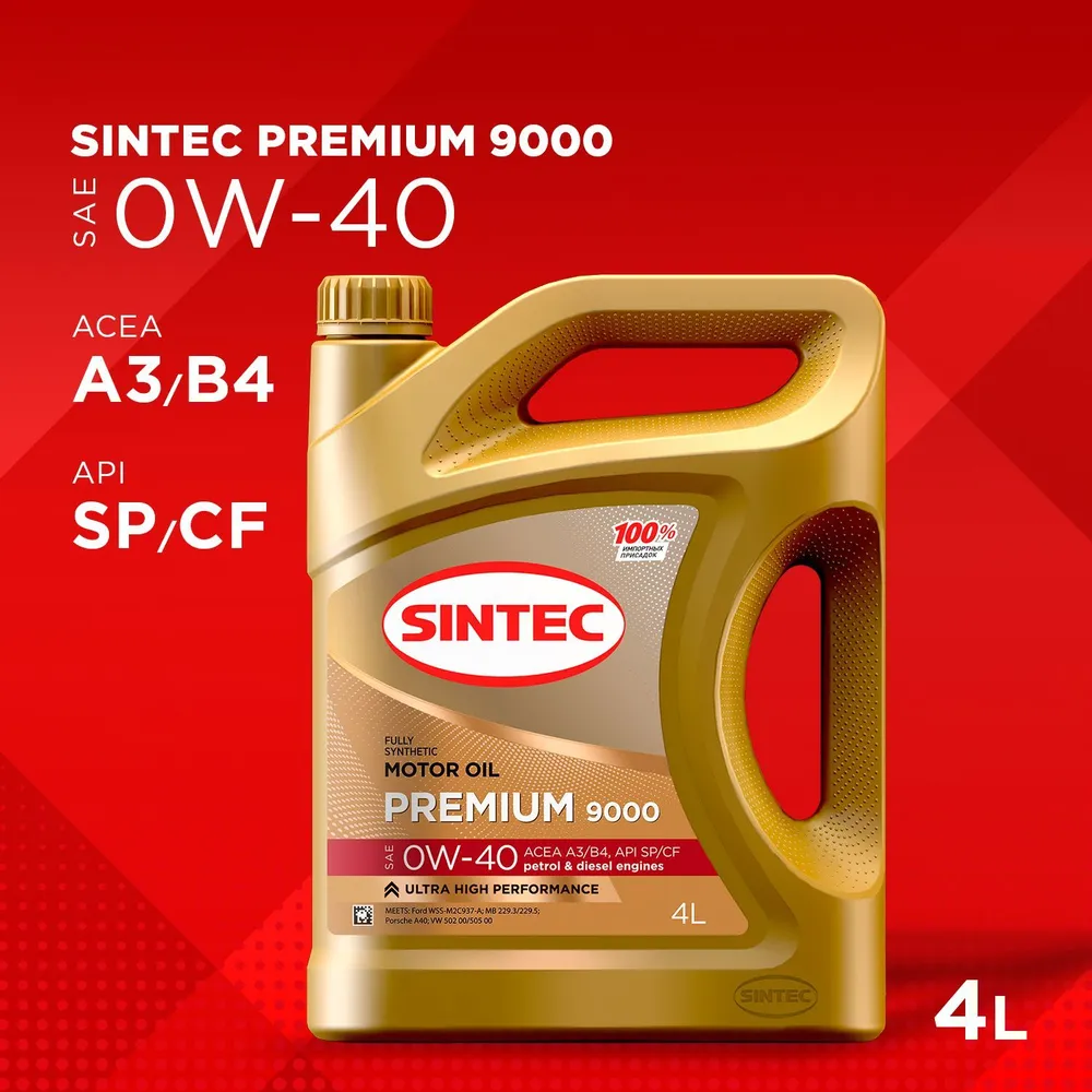 Моторное масло SINTEC Premium 9000 0W40 A3/B4 Sp/Cf 4л