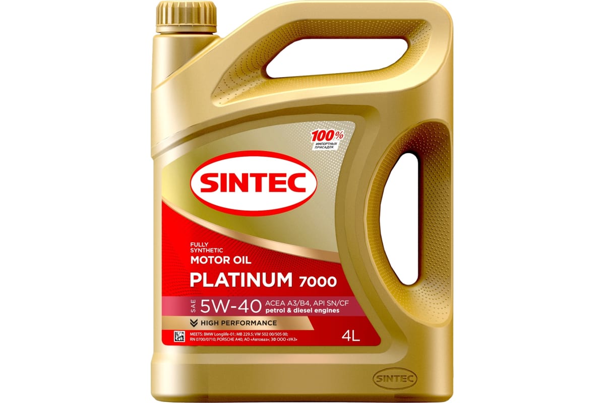 Моторное масло SINTEC синтетическое Platinum 7000 Sae 5W40 Api Sn/Cf Acea A3/B4 60л