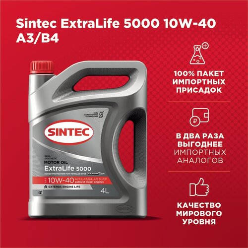 Моторное масло SINTEC синтетическое EXTRALIFE 5000 SAE 10W40 API SL/CF ACEA A3/B4 4л