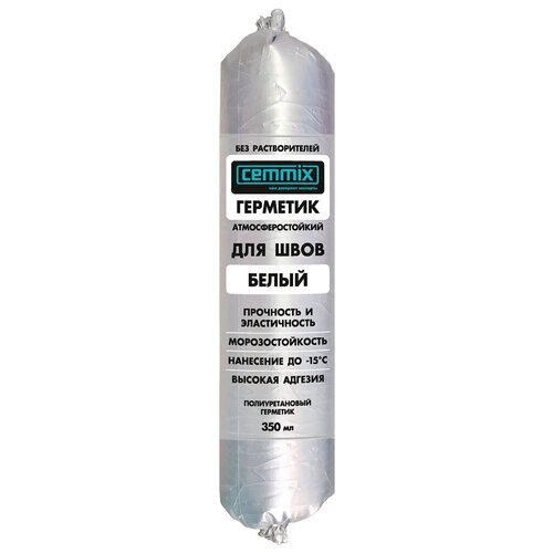 CEMMIX Клей-герметик для швов — однокомпонентный высокомодульный полиуретановый герметик, предназначен для герметизации швов из различных материалов шириной до 20 мм, в том числе подвергающихся постоянному воздействию воды и вибрации. Герметизация и приклеивание закладных и монтажных элементов на конструкции кровли (водосточные воронки, аэраторы, карнизы и пр.). Используется для приклеивания и укладки кровельной черепицы и других кровельных материалов.