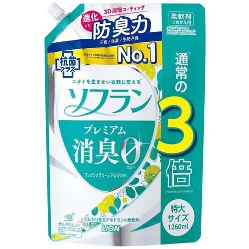 Lion Дезодорирующий кондиционер для белья с антибактериальным эффектом, аромат цитрусовых фруктов и легкой мяты, 1260 мл