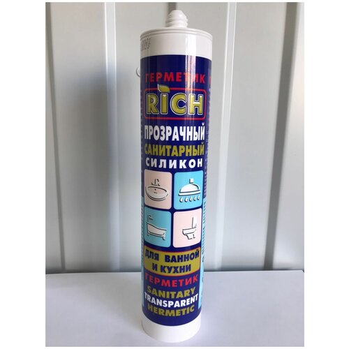 Быстросохнущий эластичный герметик применяется при общих бытовых, ремонтных и строительных работах. Идеально подходит для помещений с повышенной влажностью, благодаря специальным антисептическим добавкам, препятствующим образованию плесени и грибков. Применяется для уплотнения соединительных швов вокруг ванн, раковин, бассейнов; герметизации стыков при установке сантехнического оборудования, гидроизоляции поверхности, заделки швов между плитками. Герметик силиконовый RICH санитарный 280мл имеет следующие преимущества:- предотвращает появление плесени;- устойчив к УФ излучению, воздействию чистящих и моющих средств;- адгезия к эмалированным поверхностям, стеклу, цветным металлам, бетону, штукатурке, дереву, ПВХ, фарфору и другим строительным материалам.