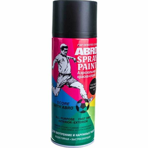 Краска-спрей ABRO MASTERS № 12 черный матовый, 400 мл, 1 шт. SP-012 применяется для окрашивания металлических, деревянных поверхностей, а также для пористых материалов (кирпич, бетон рекомендуют предварительно обработать водоэмульсионной краской).Используют для внутренних и наружных работ. Благодаря составу, продукт создает покрытие сочного и яркого цвета.