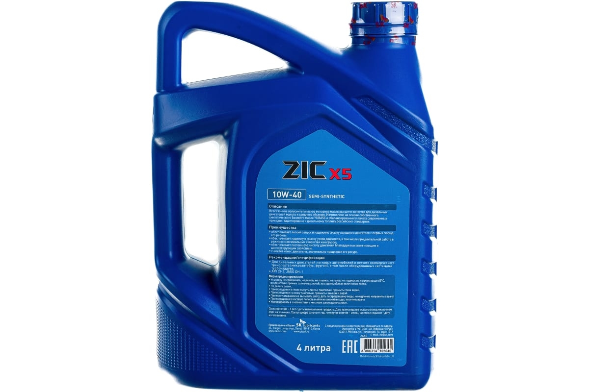 Полусинтетическое моторное масло ZIC X5 DIESEL 10W40 (4л) 162660