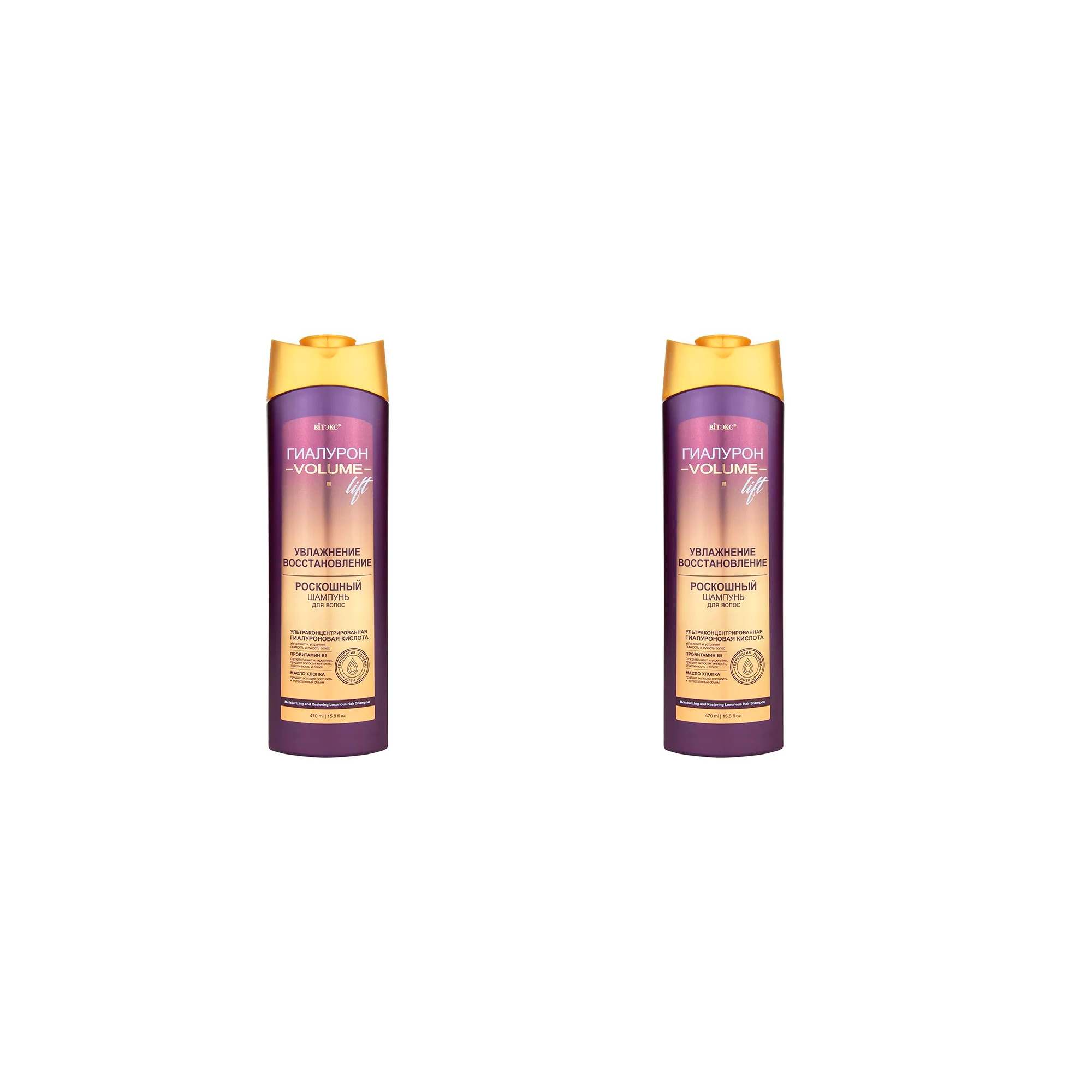 Шампунь для волос Витэкс Гиалурон Volume lift Увлажнение и восстановление, 470 мл х 2 шт.