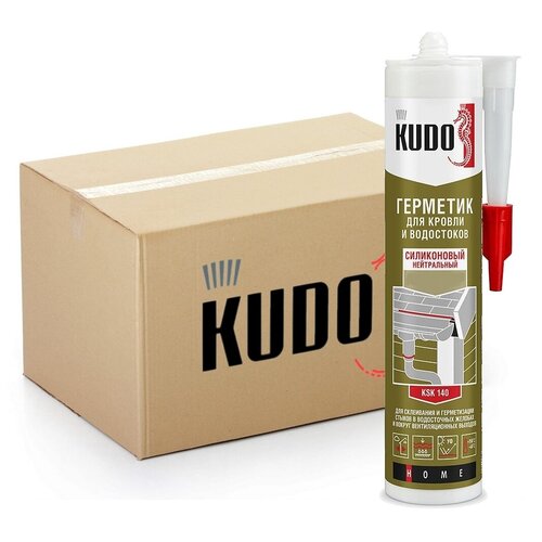 Герметик KUDO "KSK 140", силиконовый, для кровли и водостоков, прозрачный, туба, 280 мл, упаковка 12 шт.