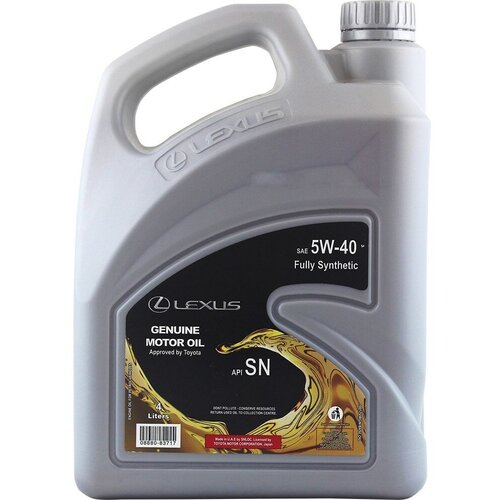 Масло моторное синтетическое Lexus Oil SN 5W40 - для бензиновых двигателей.Соответствует спецификациям API SN, ILSAC GF-5.Изготовитель: ENOC, Emiretes National Oil Company в сотрудничестве с Idemitsu Kosan Co, Ltd (Объединенные Арабские Эмираты (ОАЭ), по лицензии Toyota Motor Corporation, Japan.Масло автомобильное Лексус 5в40 - изготовлено с учётом всех конструктивных особенностей силового агрегата для обеспечения свободной циркуляции масла по системе и стабильной смазки всех деталей двигателя.Моторное масло Lexus 5W-40 является отличным вариантом для использования в автомобилях, работающих в жестких режимах и холодном климате. Обладает низкой вязкостью при достаточно сильных морозах (до -40), обеспечивая беспроблемный запуск двигателя. Выступает в качестве хорошего уплотнителя для изношенных моторов. Защищает детали двигателя от износа, коррозии, вредных отложений. Экономит топливо за счет снижения трения деталей, что положительно сказывается на тратах на бензин.Технические характеристики синтетического моторного масла Lexus 5W-30:кинематическая вязкость (при температуре 40º С) – 62.85 мм2/с;кинематическая вязкость (при температуре 100º С) – 10.59 мм2/с;щёлочность – 8.53 мг KOH/г;индекс вязкости – 159;кислотность – 1.53 мг KOH/г;процентное содержимое сульфатной золы – 0.97%;динамическая вязкость (CSS, определяется посредством использования имитатора холодной прокрутки) при температуре -30 º С – 5772;температура застывания – минус 40º С.Моторное масло LEXUS Genuine Motor Oil sn 5w40 подходит для:для бензиновых двигателей;для 4-х тактных двигателей;для турбированных двигателей.