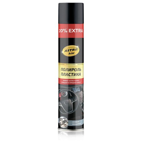 Полироль приборной панели ASTROhim ACT-2353 матовый, новая машина, 1000млАвтомобиль требует ухода не только снаружи, но и внутри. Например, пластиковые детали внутренней и внешней отделки кузова со временем тускнеют и теряют привлекательный внешний вид. Регулярная обработка специальными составами способна не только сохранить первоначальный вид пластика надолго, но и защитить от факторов, влияющих на его старение. Полироль пластика ASTROhim - эффективное средство для ухода за пластиковыми, виниловыми и резиновыми элементами отделки интерьера автомобиля. Значительно улучшает внешний вид пластика, обновляет его цвет. Антистатические компоненты, содержащиеся в его составе, предотвращают чрезмерное оседание пыли на поверхность. Благодаря беспенному составу, полироль быстро и легко располировывается по поверхности. После обработки оставляет на поверхности тонкую не жирную и не липкую полимерную пленку, которая защищает пластик от выгорания и растрескивания. Кроме того, наполняет салон приятным ароматом. Полироль не содержит спирт, поэтому безопасен для всех видов пластика.