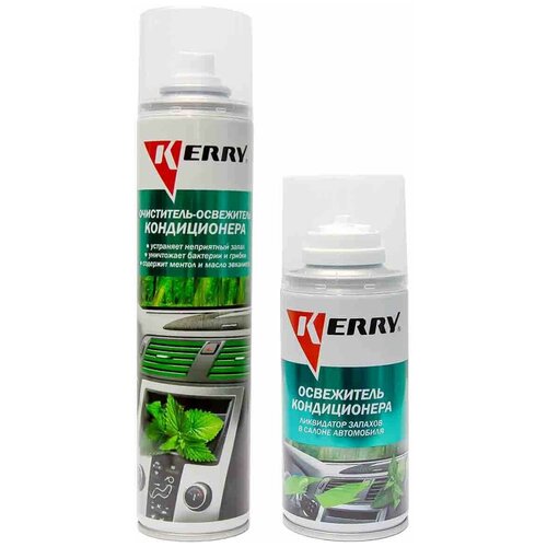 Комплексная очистка системы вентиляции отличное решение при первой помощи очистки кондиционера, которая не только очищает поверхностно, но и благодаря своим свойствам проникает глубоко внутрь и очищает от пыли, грязи и различных отложений, негативно сказывающихся на здоровье водителя и пассажиров.Очиститель-освежитель кондиционера KERRY профессиональное средство для очистки и дезинфекции системы вентиляции и кондиционирования автомобиля. Быстро и эффективно устраняет плесень, бактерии, грибки, вызывающие риск развития аллергии и заболеваний дыхательных путей. Образует на поверхности испарителя защитную дезинфицирующую пленку, которая предотвращает накопление и размножение вредных микроорганизмов, приводящих к возникновению неприятного запаха в салоне.Преимущества комплекта:Безопасен;Прост в применении;Комплексная очистка;Быстро и эффективно устраняет неприятный запах;Обладает бактерицидным и дезодорирующим действием;Восстанавливает свежий и чистый воздух в салоне автомобиля;Эффективное средство для очищения приборной панели, винила, пластика от любых типов загрязнений;Используется без демонтажа салонного фильтра и разборки системы кондиционирования;Создает приятную атмосферу в салоне автомобиля, за счет содержания в составе натуральных эфирных масел ментола и эвкалипта.