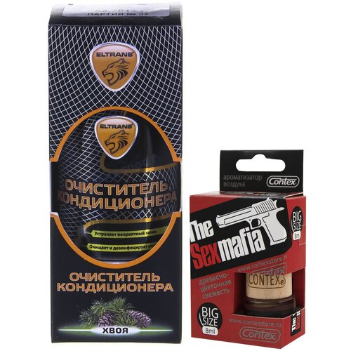 Многие автовладельцы сталкивались с появлением неприятного запаха в салоне автомобиля при включении кондиционера. Наиболее распространенной причиной неприятного запаха являются скопившиеся на испарителе кондиционера пыль и грязь. С помощью очистителя кондиционера ELTRANS Вы сможете нейтрализовать причину неприятного запаха в салоне авто! С ароматизатором Contex Вы наполните салон автомобиля приятным легким ароматом!Используя очиститель ELTRANS Вы сможете с легкостью очистить кондиционер авто от загрязнений и устранить причину неприятного запаха. Шашка тщательно дезинфцирует автокондиционер, уничтожая подавляющее большинство микроорганизмов и предотвращает их размножение. Средство образует чрезвычайно мелкодисперсную взвесь дезинфицирующего состава, распределяющуюся по всему объему системы кондиционирования. После использования шашки очиститель остается в ячейках воздушного фильтра, на поверхностях в салоне автомобиля и сохраняет свою активность, продолжая убивать бактерии и вирусы в воздушном потоке. Из кондиционера автомобиля после очистки поступает свежий и чистый воздух. Очиститель создает приятную атмосферу в салоне автомобиля, за счет содержания в составе натурального эфирного масла хвои. С ароматизатором CONTEX THE SEX MAFIA Вы дополните эффект от применения очистителя и наполните салон автомобиля древесно-цветочный аромат подарит Вам приятные и яркие эмоции от вождения.Преимущества комплекта:Доступная цена;Легко в применении;Эффективное средство;Устраняет неприятные запахи;Нейтрализует источники неприятных запахов;Восстанавливает свежий и чистый воздух в салоне автомобиля;Ароматизатор безопасен при использовании на постоянной основе;Салон Вашего автомобиля наполнится утонченным ароматом цветов с древесными нотками.После использования шашки очиститель остается в ячейках воздушного фильтра, на поверхностях в салоне автомобиля и сохраняет свою активность, продолжая убивать бактерии и вирусы в воздушном потоке.