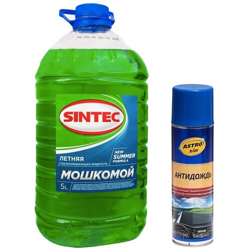 Жидкость стеклоомывателя летняя 5 л Мошкомой SINTEC / омывающая жидкость (омывайка летняя), ПЭТ + Антидождь для стекол и зеркал автомобиля (защитный спрей для лобового стекла с эффектом антидождя) ASTROHIM - 355 мл 900656/АС-893