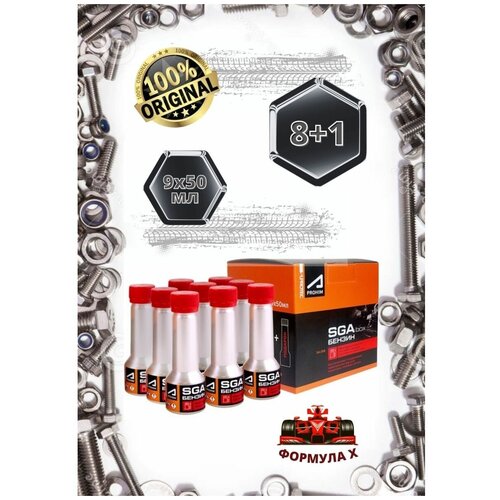 Набор присадка в бензин Suprotec Супротек Апрохим СГА (SGA) для снижения расхода и продления ресурса форсунок 123292 состоит из девяти флаконов присадки в бензин СГА в одной упаковке. Состав рассчитан на смешивание 1 мл состава на 1л топлива т. е. набора состава СГА хватит на 450л бензина. Топливная присадка SGA предназначена для улучшения моющих и смазывающих характеристик бензина, что продлевает срок службы топливной аппаратуры. Состав эффективно и безопасно работает в топливных системах любых систем: карбюраторных, инжекторных и системах непосредственного впрыска (TFSI, TSI, GDI, MDI и др). Комплексное восстановление топливной аппаратуры улучшает впрыск, что приводит улучшению ряда характеристик автомобиля: снижается расход топлива, двигатель работает тише и мягче, увеличивается ресурс форсунок и насосов, увеличивается срок службы турбокомпрессоров и дожигателей топлива, снижается токсичность и дымность выхлопных газов.
