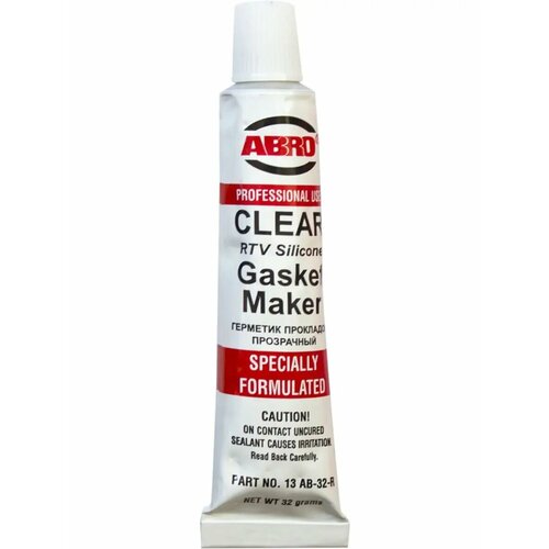 Герметик прокладок ABRO MASTERS (прозрачный) 32 г;ABROПредназначен для ремонта и замены прокладок, работающих при высокой температуре. Идеально подходит для замены прокладок клапанных крышек, масляных насосов, водяной помпы, крышки коробки передач, дифференциалов, впускного коллектора, корпуса термостата и т. д.свойства• Высокотемпературный, до +343°С.• Позволяет сформировать прокладку до 6 мм.• Сохраняет высокую эластичность и прочность после застывания.• Не подвержен растрескиванию и деформации в ходе температурных циклов.• Высокая адгезия к различным материалам.• Не разрушается под воздействием масел, воды, антифриза, трансмиссионных жидкостей.• Успешно выдерживает сжатие, растяжение и сдвиг.