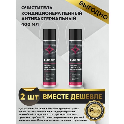 Пенный очиститель кондиционера антибактериальный LAVR специальное средство для удаления бактерий и плесени в труднодоступных местах системы вентиляции и кондиционирования автомобилей: воздуховодах, патрубках, испарителях, дренажных трубках**.** Устраняет загрязнения и неприятный запах в системе. Подходит для самостоятельного применения.