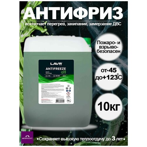 Устали искать надежный антифриза? Гибридный антифриз LAVR G11 - то, что вам нужно. Охлаждающая жидкость изготовлена на основе моноэтиленгликоля высшей категории качества. Она безупречно выполняет свою работу, долго сохраняя свойства. 11 причин выбрать LAVR G11: надежная защита от ржавления рабочий диапазон температур от -45С до +123С хорошая теплоотдача высокотехнологичный и тщательно сбалансированный пакет присадок увеличение ресурса работы помпы, радиатора, насоса, резиновых уплотнителей исключение замерзания, перегрева, закипания и появления воздушных пробок совместимость с деталями из меди и латуни увеличенный срок эксплуатации до 3 лет (или 150 000 км) пожаровзрывобезопасность стабильность в течение всего срока эксплуатации справедливая цена. Состав: Этиленгликоль, пакет многофункциональных присадок, вода деминерализованная, противопенные добавки, краситель.