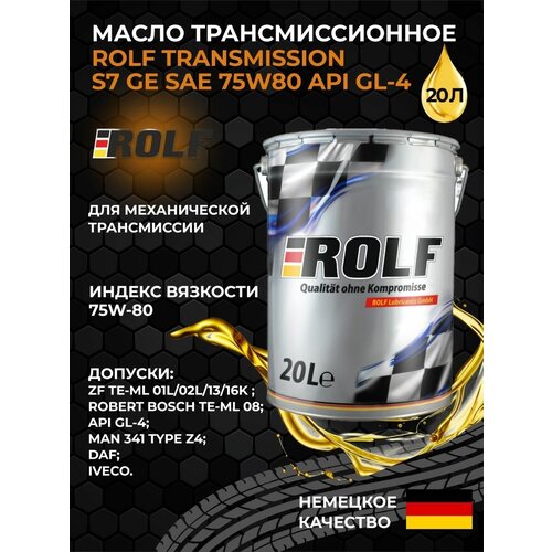 Высококачественное синтетическое всесезонное трансмиссионное масло ROLF TRANSMISSION S7 GE 75W-80. Производится на основе высокотехнологичных синтетических базовых масел, что обеспечивает очень высокий индекс вязкости, благодаря чему превосходные низкотемпературные свойства масла защищают и обеспечивают плавное переключение передач при самых низких температурах. Применение синтетических компонентов так же наделяет масло отличной термоокислительной стабильностью, что гарантирует полную стабильность свойств масла на весь период эксплуатации.