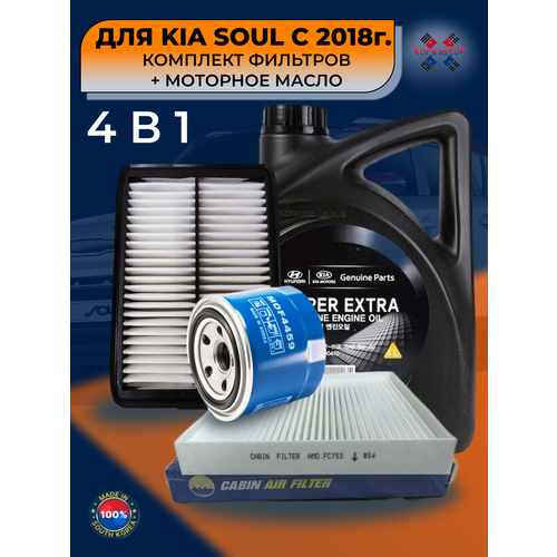 Масло моторное + набор фильтров для KIA SOUL с 2018г. Масло оригинальное полусинтетическое MOBIS Super Extra Gasoline 5W-30.