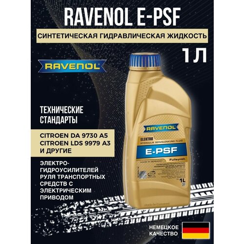 RAVENOL E-PSF Fluid – это полностью синтетическая жидкость для электро-гидроусилителей руля транспортных средств с электрическим приводом Nissan и Toyota. Гарантирует оптимальную силовую передачу. Изготовлена на основе высококачественного базового масла и специального комплекса присадок и ингибиторов, обеспечивающих бесперебойную работу электро-гидроусилителя руля транспортных средств с электрическим приводом. Применение: Разработана для электро-гидроусилителей руля транспортных средств с электрическим приводом. Является аналогом оригинальным жидкостям: Fiat 9.55550-AG3Nissan E-PSFNissan 999MP-EPSF00PNissan KLF51-00001 JTEKT EHS Elektro-Hydraulik Servolenkung (EHPS Electro-HydraulicPower Steering)Toyota PSF-EHToyota 08886-01206Применение E-PSF Fluid обеспечивает: Низкую температуру застыванияОчень хорошие противопенные свойства, отсутствие пенообразованияХорошие смазывающие свойства даже при низких температурах в зимний периодСтабильно высокий индекс вязкостиВысокую устойчивость к окислениюКомплексную защиту от износа, коррозии и пенообразованияНейтральное поведение по отношению к уплотнительным материаламНейтральное отношение к цветным металламОтвод тепла от трущихся поверхностей