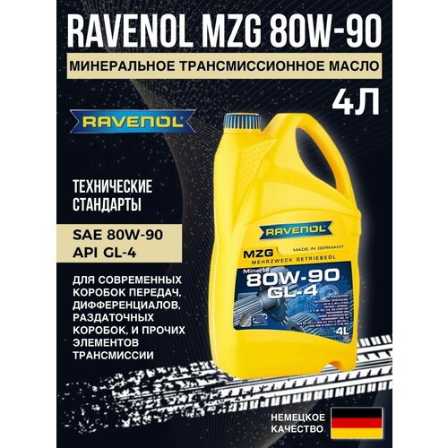 RAVENOL MZG 80W-90 GL-4 – минеральное трансмиссионное масло, изготовленное на основе высокоочищенного базового масла c добавлением комплекса специальных присадок. Обеспечивает высокую нагрузочную способность, защиту от износа и устойчивость к окислению. Гарантирует хорошие вязкостно-температурные характеристики, низкую температуру застывания и отсутствие пенообразования при всех различных условиях эксплуатации и режимах. Предназначено для современных коробок передач, дифференциалов, раздаточных коробок, гипоидных передач задних мостов и прочих элементов трансмиссии, для которых производитель рекомендует применение смазочных материалов с высоким содержанием противоизносных присадок. Применение Getriebeoel MZG SAE 80W-90 GL-4 обеспечивает: Хорошую адгезию и выдерживающую давление смазочную пленкуОтличную устойчивость к оскислениюПрекрасные вязкостно-температурные свойстваОтличную защиту от износаЗащиту от пенообразованияНейтральное поведение по отношению к уплотнительным материалам