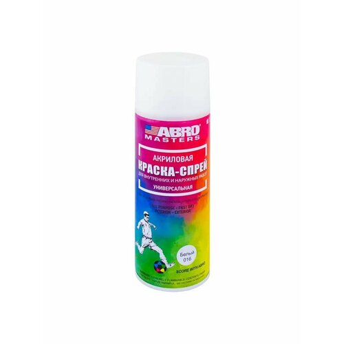 Краска-спрей ABRO MASTERS 272 мл (226 г); ABROИспользуется для окраски, ремонта и художественного оформления.свойства• Предназначена для окрашивания металлических, деревянных, бетонных и прочих поверхностей.• Даёт стойкие красочные цвета.• Обеспечивает прекрасный блеск.• После высыхания не токсична.• Подходит для внутренних и наружных работ.• Не выгорает на солнце.• Расход — 1 баллон на 1−2 м2.• Широкая цветовая палитра.