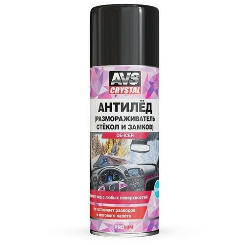 Универсальное средство для удаления льда и снега с любых поверхностей автомобиля (стёкол, зеркал, замков дверей) в зимнее время. После использования создаёт защиту от повторного появления льда. Безопасен для резиновых, металлических деталей и лакокрасочного покрытия автомобиля.Способ применения: Встряхните баллон. Равномерно распылите средство на расстоянии 20-25 см сверху вниз. Через одну минуту удалите с поверхности образовавшуюся жидкость.При низких температурах давление в баллоне понижается, в результате чего распыление содержимого может быть затруднено или не происходить. Для восстановления первоначальных свойств рекомендуется подержать баллон при комнатной температуре.Состав: спирт изопропиловый >30%, алифатические углеводороды ?30%, пропиленгликоль ?5%.