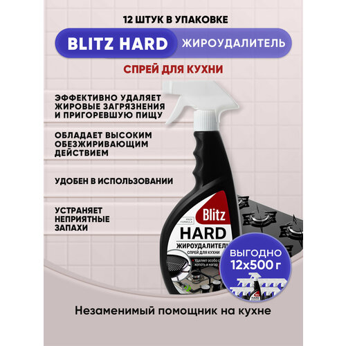 BLITZ HARD Жироудалитель спрей для кухни 500г/12шт