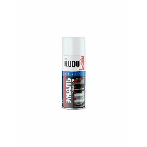 Эмаль аэроз. KUDO д/радиаторов алкид. белая 520мл Высококачественная алкидная эмаль KUDO предназначена для защитно-декоративной окраски систем отопления (батарей, радиаторов, трубопроводов водоснабжения). Эмаль быстро высыхает, обладает высокой укрывающей способностью, превосходно подходит как для окрашивания новых поверхностей, так и для ремонта старых.После высыхания эмаль образует надежное, атмосферостойкое покрытие с высокой твердостью и длительным сроком эксплуатации, способное выдерживать нагревание до +80°С в течение всего срока службы окрашенного элемента системы отопления.Покрытие имеет хорошую сопротивляемость к удару, изгибу и другим механическим воздействиям, устойчиво к кратковременному воздействию воды, теплоносителей на основе этиленгликоля, бытовым моющим средствам.сушка между слоями 10-15 минутвысыхание на отлип 60-80 минполное высыхание 12 часов