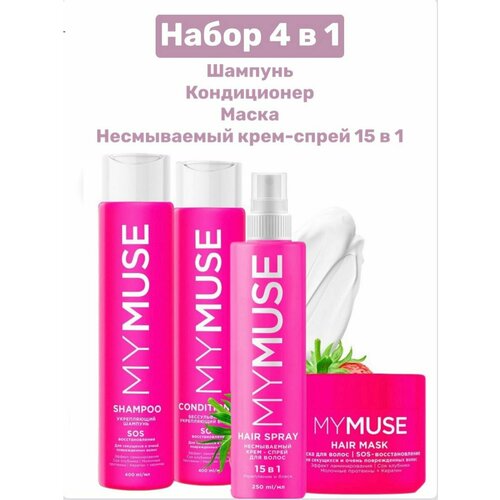 MY MUSE представляет несмываемый крем-спрей «15 в 1» для ухода за волосами, а также укрепляющий шампунь и бальзам, созданные специально для поврежденных и секущихся волос с эффектом ламинирования. Формулу продуктов дополняют сок клубники и полезные вещества – молочные протеины, кератин и керамид.Кератин способствует глубокому увлажнению и питанию волос, улучшая их структуру. Керамид обеспечивает волосам блеск, защищая их от ломкости и укрепляя их структуру. Молочные протеины питают волосы и стимулируют их рост, а также помогают в процессе регенерации. В то же время, сок клубники увлажняет волосы и придает им сияние, восстанавливая их здоровье.
