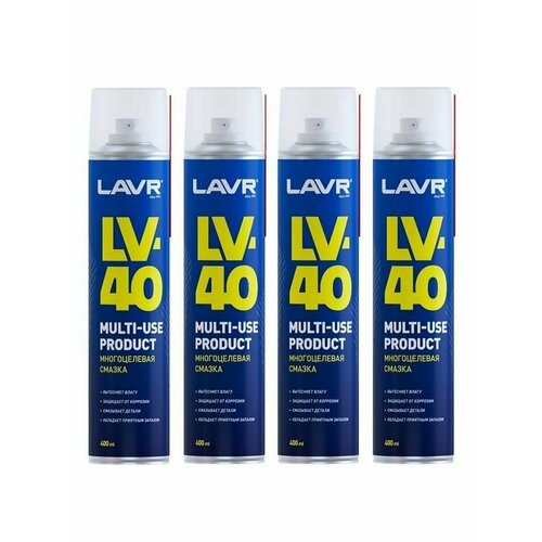 Многоцелевая смазка LV-40 LAVR Multipurpose grease LV-40 520 мл (аэрозоль) 4 шт. Многофункциональное средство для вытеснения влаги, защиты от коррозии, устранения скрипов и заеданий, смазывания любых узлов и механизмов. В отличии от аналогов обладает приятным запахом.- Эффективно устраняет скрипы и заедания петель, замков и других узлов- Защищает от влаги и препятствует коррозии- За 1 - 2 минуты разъединяет прикипевшие и приржавевшие соединения- Смазывает и восстанавливает работоспособность механизмов- Предотвращает окисление электрооборудования- Обладает высокой проникающей способностью- Удобно распыляется благодаря удлинительной трубке- Имеет приятный ненавязчивый аромат