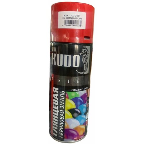 Эмаль универсальная акриловая RAL 3002 темно-красная высокоглянцевая 520 мл / KUDO