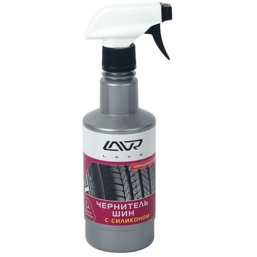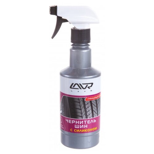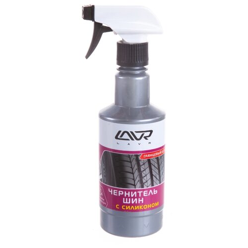 Чернитель шин LAVR с силиконом, 500 мл, триггер Ln1475. Чернитель шин с силиконом LAVR придает шинам насыщенный тёмный цвет и благородный блеск.Его особенности:* Увеличивает срок службы резины и внешних пластиковых элементов, защищая от старения, растрескивания и вредного воздействия ультрафиолетовых лучей.* Делает повреждения поверхностей менее заметными.* Легко наносится, не требует долгой и трудоёмкой располировки, даёт мгновенный и стойкий эффект.Применение:1. Встряхнуть перед использованием. Нанести препарат на чистую сухую поверхность с помощью ткани или губки.2. Равномерно распределить по поверхности. Не допускать попадания препарата на тормозные колодки!