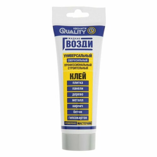 Жидкие гвозди Quality, универсальные, тюбик, 100 мл. Ищете качественный инструмент Поздравляем, нашли! Стройте грандиозные планы, реализуйте свои идеи и не бойтесь знакомиться с новыми материалами и техниками. У вас всё получится, ведь у нас вы найдете инструмент как для бытового использования, так и для профессиональной деятельности. Может быть, Жидкие гвозди Quality, универсальные, тюбик, 100 мл — это именно то, что вы всегда искали. И не бойтесь, что потратите больше запланированного бюджета, ведь мы предлагаем вам наиболее честное соотношение цены и качества. (3562845)