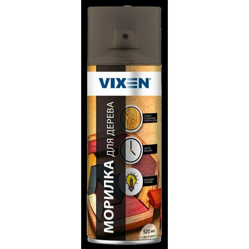 Морилка для дерева, темный дуб, аэрозоль 520 мл VX91001 VIXEN. Аэрозольная морилка для дерева VIXEN позволяет быстро и легко обработать поверхность древесины, усилить ее естественный цвет или придать благородный внешний вид. Средство проникает в поры дерева, таким образом, проявляя красивую ярко выраженную структуру поверхности. Инструкция по использованию: Перед нанесением морилки подготовьте поверхность: очистите от грязи, при необходимости отшлифуйте и затем обезжирьте. Для этого рекомендуем использовать "Обезжириватель универсальный" VIXEN (арт. VX90003). Во избежание попадания следов состава на поверхности, не подлежащие обработке морилкой, защитите их пленкой или бумагой. До проведения основных работ рекомендуется произвести пробное нанесение на незаметном участке. Для получения качественного покрытия работы производить при температуре окружающей среды от +15 до +25С. Перед использованием энергично встряхните баллон в течение 2-3 мин. Нанесите морилку с расстояния 25-30 см в 1-3 слоя в зависимости от необходимой интенсивности цвета. Промежуточная сушка между слоями 10-15 минут. При температуре воздуха ниже +20С повышается текучесть материала, в этом случае его необходимо наносить более тонкими слоями. При эксплуатации изделия на улице или при прямом контакте с ним, после обработки морилкой поверхность рекомендуется покрыть лаком, например, "Лаком для дерева полиуретановым" VIXEN (арт. VX24005). При использовании лака другого производителя, необходимо предварительно опробовать на совместимость на незаметном участке. В промежутках между нанесением встряхивайте баллон. Во избежание засорения головки распылителя по окончании работ продуйте сопло, перевернув баллон вверх дном и выпустив остатки морилки из сопла. Время высыхания "на отлип" при температуре +20С составляет не менее 30 мин. Полное время высыхания при температуре +20С - не менее 3 часов.