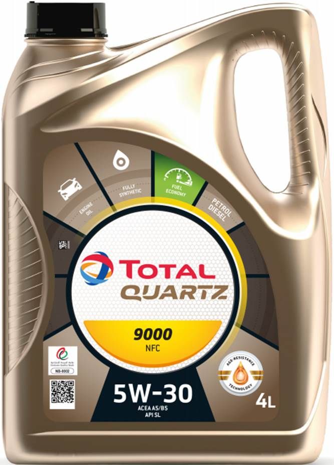 Моторное масло QUARTZ 9000 NFC 5W-30 - Всесезонное моторное масло для бензиновых и дизельных двигателей, созданное по современной синтетической технологии.ОписаниеПреимущества TOTAL QUARTZ 9000 NFC 5W-30Снижено влияние на окружающую среду: снижение расхода топлива на 3% по сравнению со стандартным маслом 15W-40 согласно официальному АСЕА тесту М111FE.Защита двигателя и чистота: масло содержит моюще-диспергирующие присадки и предлагает наилучшую из всех возможных в своей категории защиту от изнашивания и образования отложенийЛегкий холодный пуск: пуск холодного двигателя легко осуществить благодаря хорошей текучести масла при низких температурах.Интервал между заменами масла: возможность расширения интервалов замены масла ограничена режимом эксплуатации автомобиля, поэтому, пожалуйста, всегда обращайтесь к руководству по использованию транспортного средства.Рекомендации по применению TOTAL QUARTZ 9000 NFC 5W-30Моторное масло TOTAL QUARTZ 9000 NFC 5W-30 на основе синтетической технологии разработано с учетом наиболее строгих требований производителей как бензиновых, так и дизельных двигателей.Особенно подходит для двигателей с турбонаддувом, мультиклапанной системой и непосредственным впрыском.Данное масло может быть использовано в самых жестких условиях эксплуатации (движение в плотном городском потоке или по автомагистрали) независимо от сезона.Прекрасно подходит для автомобилей FORD, оборудованных катализаторами дожига выхлопных газов.Рекомендовано к применению на автомобилях Jaguar Land Rover, требующих одобрения Jaguar Land Rover STJLR.03.5003ОДОБРЕНИЯ АВТОПРОИЗВОДИТЕЛЕЙFORD WSS-M2C913-D;FORD WSS-M2C913-C (обратная совместимость с FORD WSS-M2C913-B);JAGUAR LAND ROVER STJLR.03.5003;Подходит для Fiat 9.55535-G1.