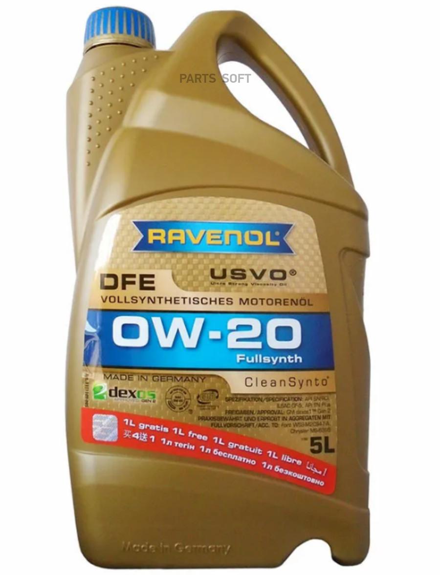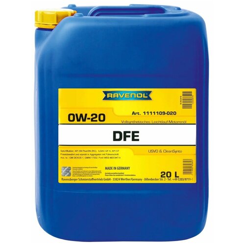 RAVENOL 111110900501999 Моторное масло RAVENOL DFE SAE 0W-20 (5л) new