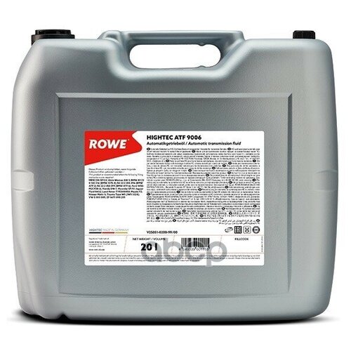 Масло Rowe трансмиссионное ATF Hightec 9006 MERCON SP/LV, Toyota Type WS, VW синтетическое 20 л ROWE 25051-0200-99 | цена за 1 шт | минимальный заказ 1
