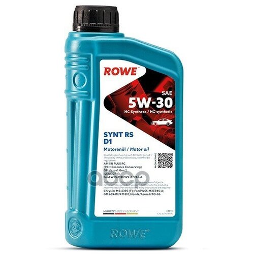 Масло Моторное 5W30 Rowe 1Л Нс-Синтетик Hightec Synt Rs D1 Sn/Plus Rc Ilsac Gf-5