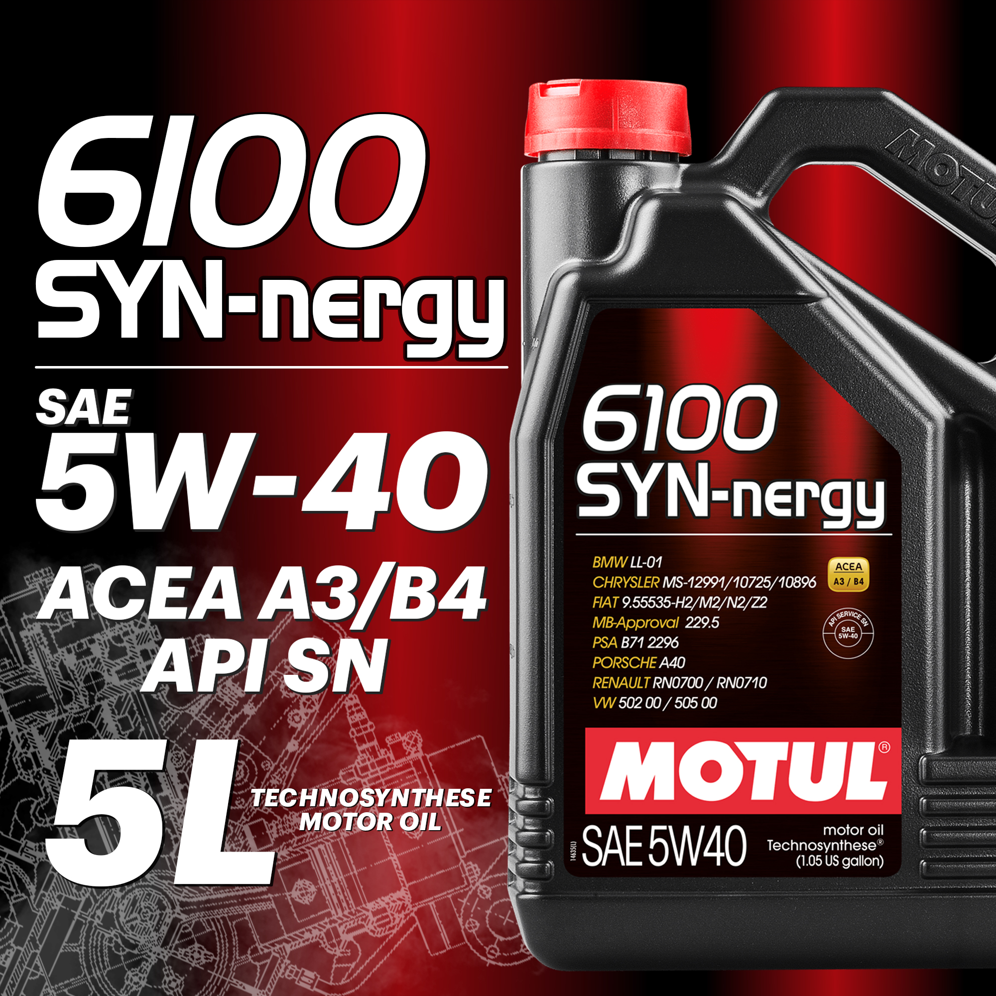 Моторное масло MOTUL 6100 SYN-NERGY, 5W-40, 5л