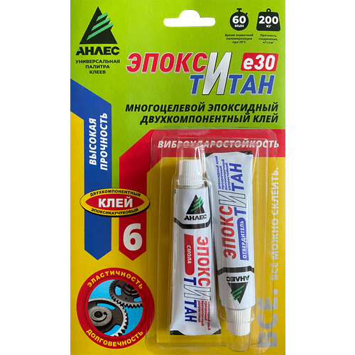 ![]() | 318 ₽ | 02.03.2024 Клей ЭпоксиТитан 30мл Анлес | |