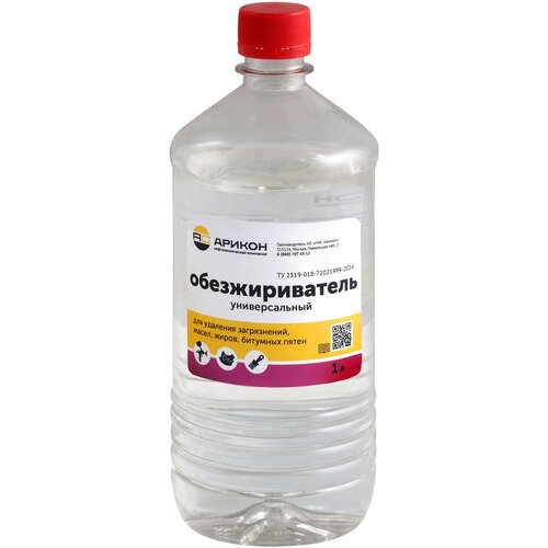 Универсальный обезжириватель Арикон бутылка ПЭТ 1л OBE1, применяемый для очистки и обезжиривания поверхностей деталей на всех этапах кузовного ремонта. Пригоден для обезжиривания старых лакокрасочных покрытий, включая разные стали, оцинкованной стали, алюминия, загрунтованных и шпатлеванных поверхностей. Используется в ответственных процессах обезжиривания и мойки деталей, узлов и агрегатов перед закаливанием и нанесением гальванопокрытий, перед окраской любой поверхности, поскольку не оставляет при испарении пленки из нерастворимых компонентов (жиров, масел). Также используется для очистки тканей, кожи. С легкостью удаляет масляные, битумные, силиконовые, восковые загрязнения.