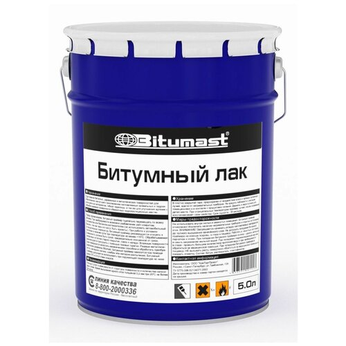 Битумный лак- антикоррозионная защита металлических поверхностей от воздействия атмосферной влаги. Консервация металлических изделий в межоперационный период или при хранении в условиях повышенной влажности. Защита деревянных конструкций от гниения и поражения грибками.Битумный лак - состав на основе нефтяного битума, органического растворителя, плёнкообразующей смолы, ингибитора коррозии и антисептика.Содержит высокоэффективный ингибитор коррозии и антисептик, препятствует возникновению подплёночной коррозии. Не содержит толуола и других токсичных растворителей.Производство работПеред применением, битумный лак тщательно перемешать по всему объёму. При необходимости возможно разбавление уайт-спиритом, сольвентом или бензином-растворителем (не использовать автомобильный бензин, так как пары его могут быть ядовиты. При нанесении битумного лака, поверхность должна быть сухой, предварительно очищенная от грязи, непрочных остатков старого покрытия, снега и наледи. Ржавые металлические поверхности зачистить механическим способом и обработать преобразователем ржавчины Bitumast. Битумный лак наносится при помощи малярного валика, кисти, швабры или методом распыления в 2 слоя с промежуточной сушкой не менее 6 часов.ХранениеХранить в плотно закрытой таре при температуре от минус 30 градусов до плюс 50 градусов. Предохранять от воздействия влаги и прямых солнечных лучей, вдали от нагревательных приборов и открытых источников огня. Не хранить в жилых помещениях и в контакте с продуктами питания. Держать в недоступном для детей месте. Гарантийный срок хранения при условии герметичной упаковки - 24 месяца. Гарантийный срок продукции в металлической таре - 36 месяцев.Меры предосторожностиНе использовать внутри жилых помещений. Битумный лак огнеопасен! Работы с битумным лаком проводить на открытом воздухе, при работе в помещении необходимо обеспечить приточную вентиляцию, не курить. Исключить наличие нагревательных приборов и открытых источников огня. Не допускать попадания битумного лака на кожные покровы, в глаза и пищевод, применять защитные костюмы, перчатки и очки. При попадании битумного лака на кожу - удалить ветошью и смыть загрязнение мыльной водой. При попадании битумного лака в глаза - промыть большим количеством проточной воды и при необходимости обратиться за медицинской помощью. При попадании битумного лака в пищевод - НЕ вызывать рвоту, немедленно обратиться за медицинской помощью и показать этикетку.