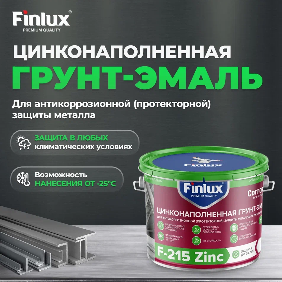 Цинковая краска Finlux F-215 для защиты металла от ржавчины, матовая, 2,5 л,цвет Серый