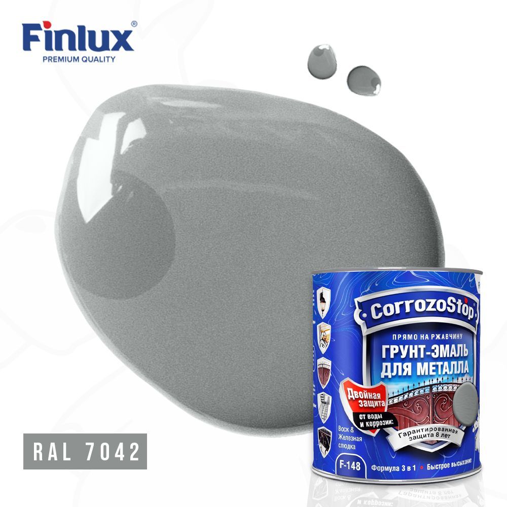 Универсальная грунт-эмаль 3в1 по металлу и ржавчине Finlux F-148, глянцевая, ral 7042, 0,75 л