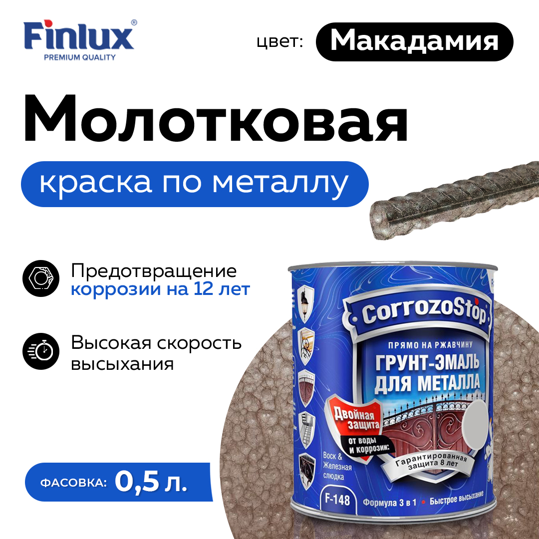 Грунт-эмаль Finlux F-148 Gold по ржавчине и металлу 3 в 1, глянец, 0.5 кг, Макадамия